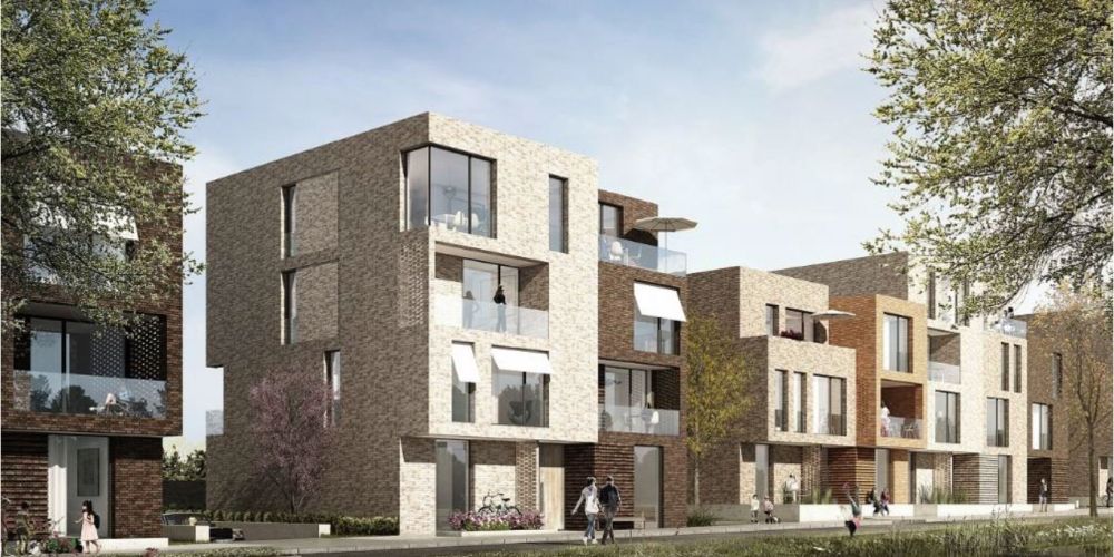 Insgesamt etwa 20 Stadthäuser, die jeweils aus 1 bis 5 Wohneinheiten bestehen, werden mit einer dahinter befindlichen Tiefgarage höchst individuell und verschachtelt entlang eines Angers gebaut.